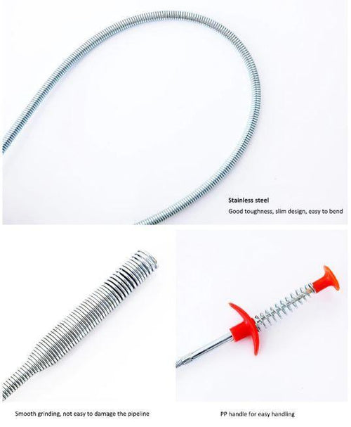 No need for any plumber or any other methods with our Spring Pipe Dredging Tool. Remove any clogs and debris easily without Chemicals!