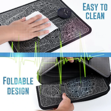 Durable silicone footpad with a conductive surface, can be cleaned with a wet towel after use. High quality, Lightweight, foldable and travel friendly, massage your feet anytime, anywhere with confidence.